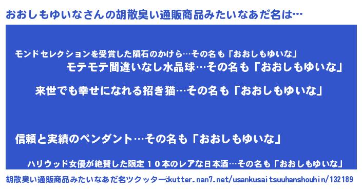 | 意味不明あだ名 | 『永久保存おおしもゆいな』 |