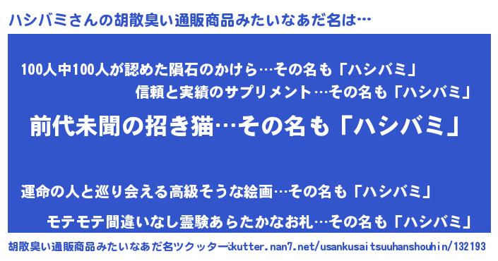 | ヘコむあだ名 | 『ハシバミ(笑)』『ハシっふぃ~』 |