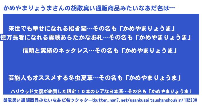 | 男性向けラノベタイトル風あだ名 | 『はたらくかめやまりょうまさま!』 |