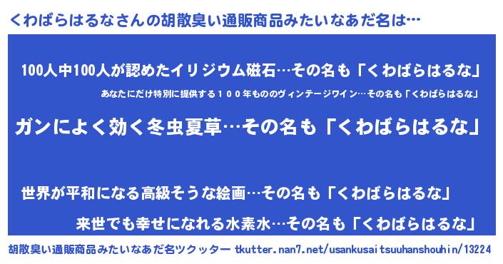 | 肩書あだ名 | 『くわばらはるな総統』 |