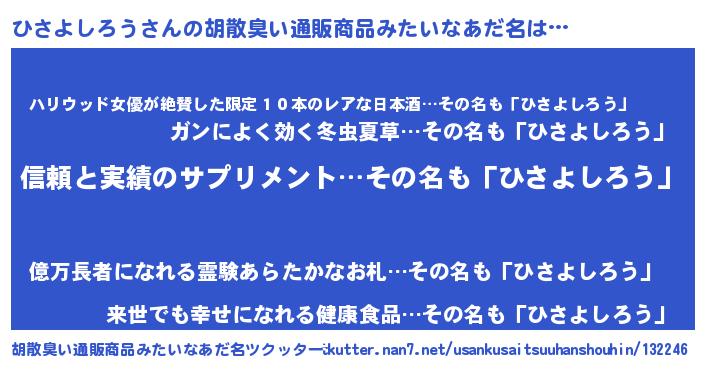| 意味不明あだ名 | 『とにかく怪しいひさよしろう』 |