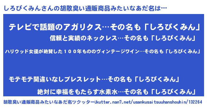 しろぴくみんさんの胡散臭い通販商品みたいなあだ名をツクッター!