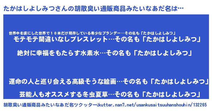 | ヘコむあだ名 | 『たかはしよしみつ(遠い目)』『たかにゅー』 |