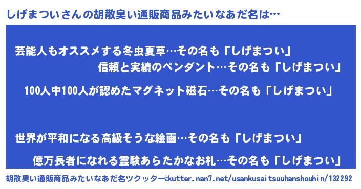 | 意味不明あだ名 | 『めかぶ科しげまつい属』 |
