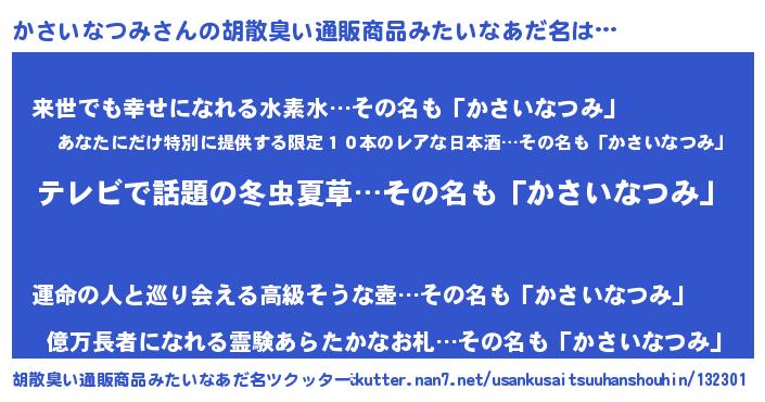 | ヘコむあだ名 | 『かさいなつみ(震え声)』『かさっふぃ~』 |