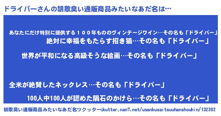 | 意味不明あだ名 | 『ドライバーフォーエバー』 |