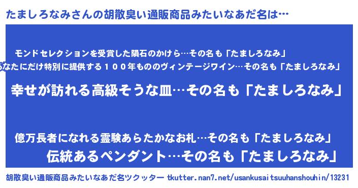 | 意味不明あだ名 | 『たましろなみフォーエバー』 |