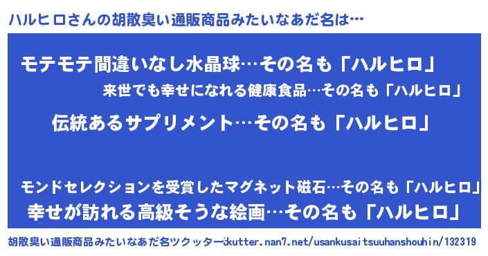 ハルヒロさんの胡散臭い通販商品みたいなあだ名をツクッター!