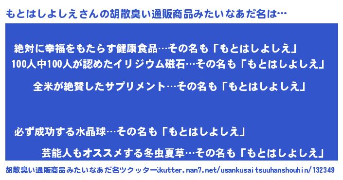 | 意味不明あだ名 | 『とにかく怪しいもとはしよしえ』 |