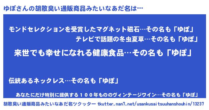 | ヘコむあだ名 | 『ゆぽ(笑)』『ゆぽを』『レバニラ』 |