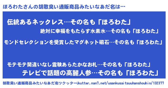 | ヒーロー風カッコイイあだ名 | 『慈愛の使者ほろわた』『魔戒騎士ホロ』 |