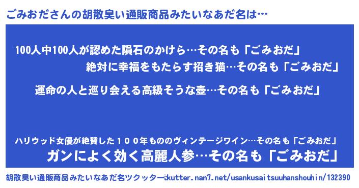 | 意味不明あだ名 | 『ごみおだフォーエバー』『自称ごみおだ』 |