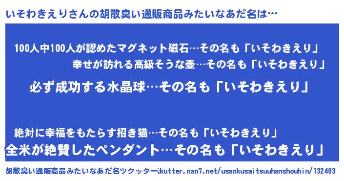 | 男性向けラノベタイトル風あだ名 | 『いそわきえりの憂鬱』 |