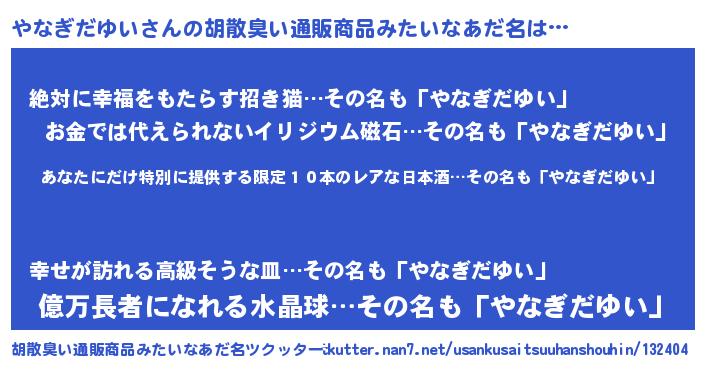 | 意味不明あだ名 | 『住所不定無職やなぎだゆい(39歳)』 |