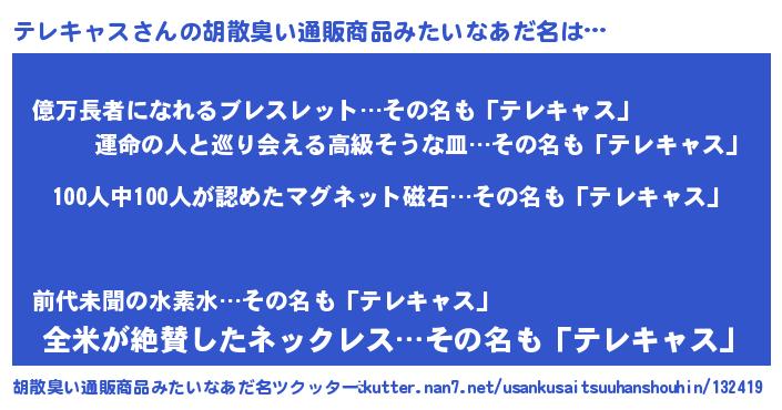 | ヘコむあだ名 | 『テレにー』『テレぷりん』『豆乳』 |