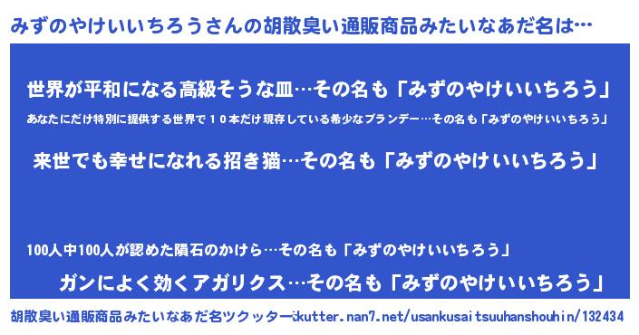 | 意味不明あだ名 | 『永久保存みずのやけいいちろう』 |