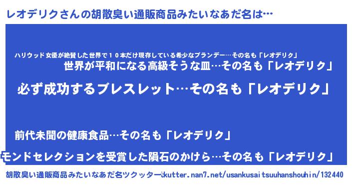 レオデリクさんの胡散臭い通販商品みたいなあだ名をツクッター!