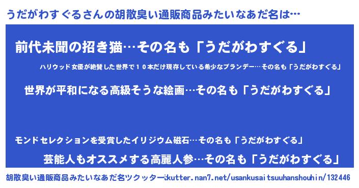 | 男性向けラノベタイトル風あだ名 | 『やはりうだがわすぐるの青春ラブコメはまちがっている 』 |