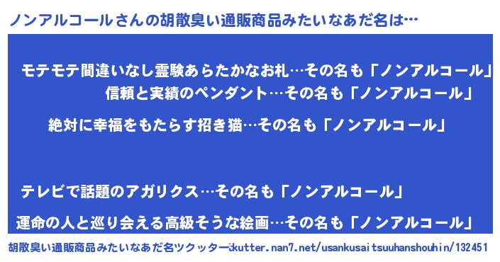 | ヒーロー風カッコイイあだ名 | 『ネオノンアルコール』『天弓騎士ノン』 |