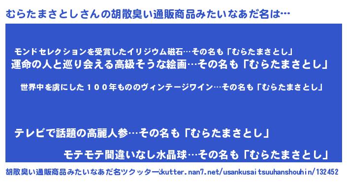 | 意味不明あだ名 | 『住所不定無職むらたまさとし(8歳)』 |