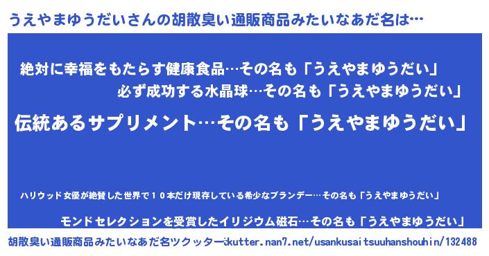 | ヘコむあだ名 | 『うえお』『うえやまゆうだい(小並感)』 |