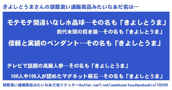 | 意味不明あだ名 | 『とにかく怪しいきよしとうま』 |