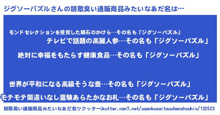 | 男性向けラノベタイトル風あだ名 | 『ジグソーパズルという概念が存在しない退屈な世界 』 |