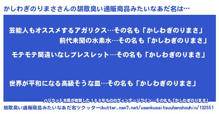 | ヘコむあだ名 | 『かしにー』『かしわぎのりまさ(爆)』 |