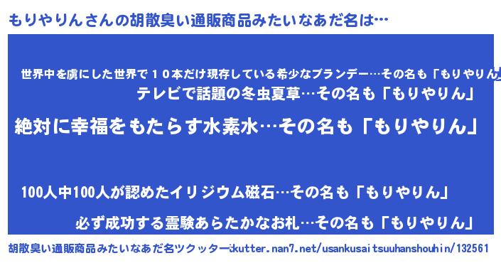 | 意味不明あだ名 | 『永久保存もりやりん』『自称もりやりん』 |