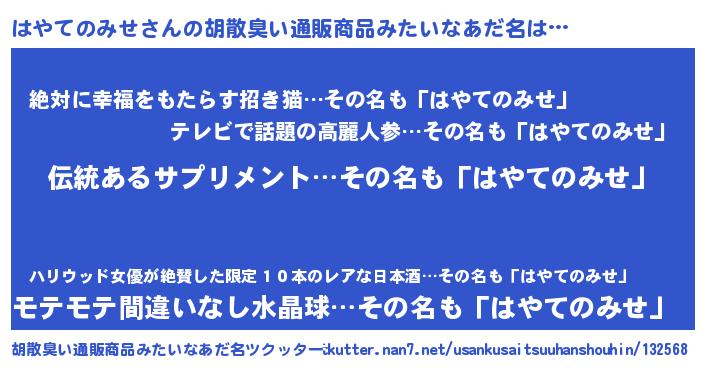 | 欧米人風あだ名 | 『トリンドルはやてのみせ』 |