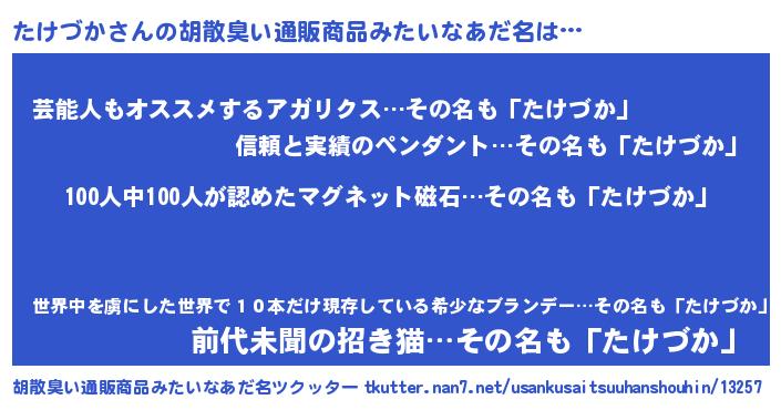 | 意味不明あだ名 | 『眠気覚ましガムたけづか味』 |