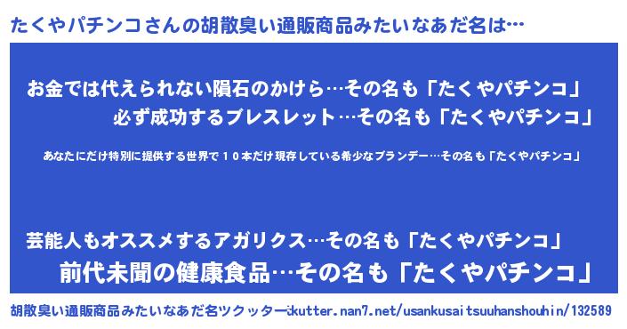| 欧米人風あだ名 | 『ダレノガレたくやパチンコ』 |