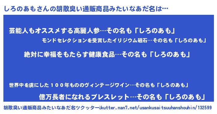| ヘコむあだ名 | 『しろのあも(笑)』『しろもー』 |