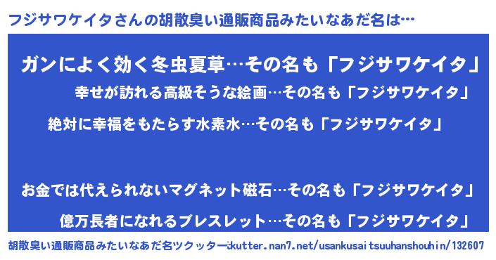| ヘコむあだ名 | 『フジサワケイタ(苦笑)』『フジっふぃ~』 |