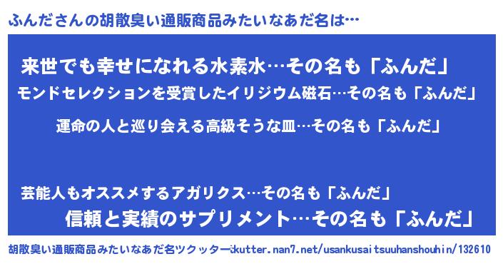 | 男性向けラノベタイトル風あだ名 | 『ふんだに滅ぼされるだけの簡単なお仕事です』 |