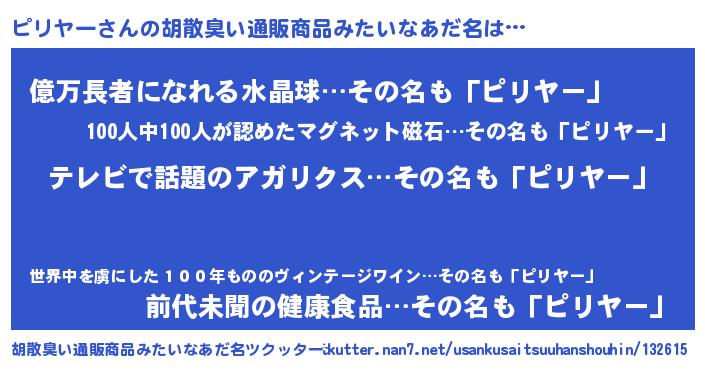 | 恥ずかしいあだ名 | 『ピリヤーデラックス』『ピリちん』 |