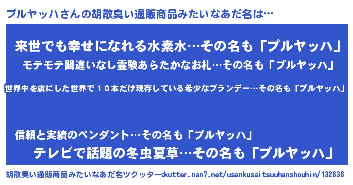 | 意味不明あだ名 | 『住所不定無職プルヤッハ(71歳)』 |