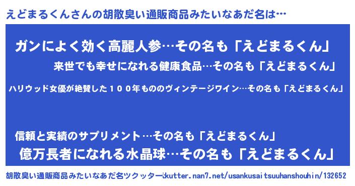 | 意味不明あだ名 | 『住所不定無職えどまるくん(12歳)』 |