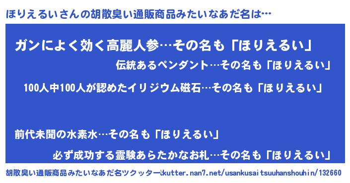 | 男性向けラノベタイトル風あだ名 | 『はたらくほりえるいさま!』 |