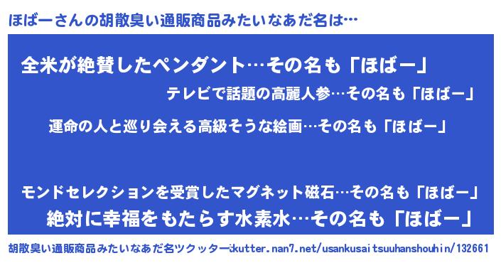| 意味不明あだ名 | 『ほばーフォーエバー』『永久保存ほばー』 |