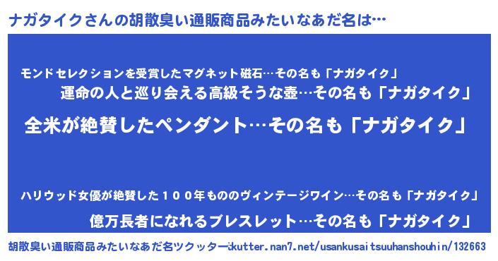 | 意味不明あだ名 | 『とにかく怪しいナガタイク』 |