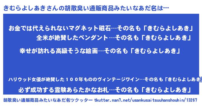 | ファンタジー風あだ名 | 『エターナルキムラヨシアキー』 |