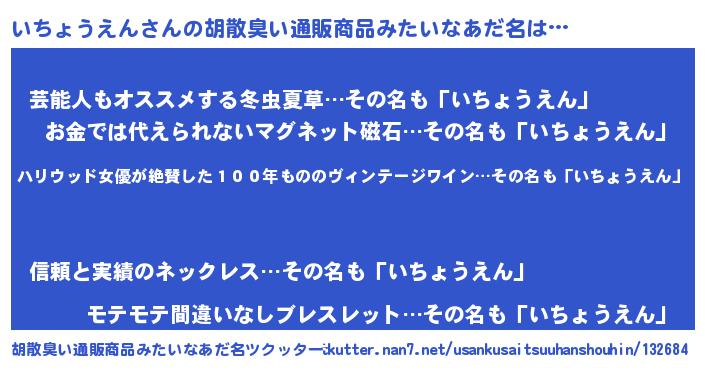 | 恥ずかしいあだ名 | 『イチョウエンデラックス』『いちっちょ』 |
