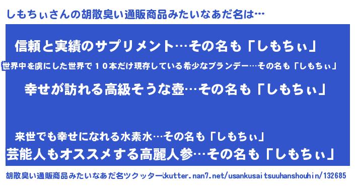 | 意味不明あだ名 | 『しもちぃフォーエバー』『自称しもちぃ』 |