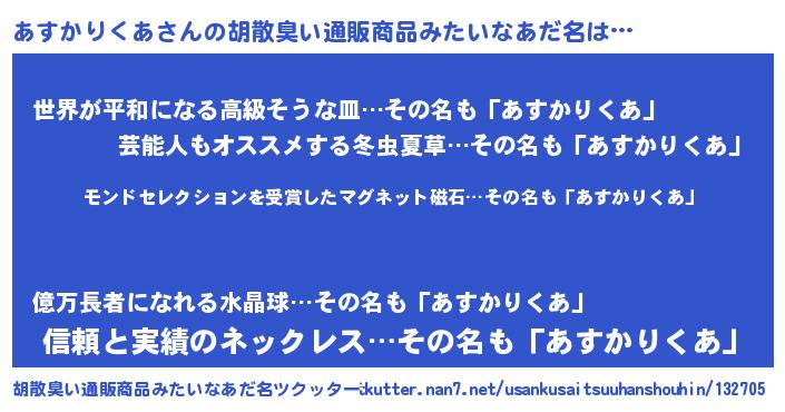 | 肩書あだ名 | 『あすかりくあ助教授』 |