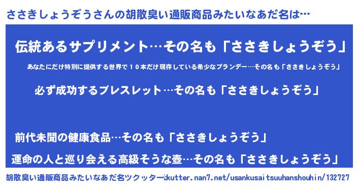 | 男性向けラノベタイトル風あだ名 | 『ササキショウゾウスレイヤー』 |