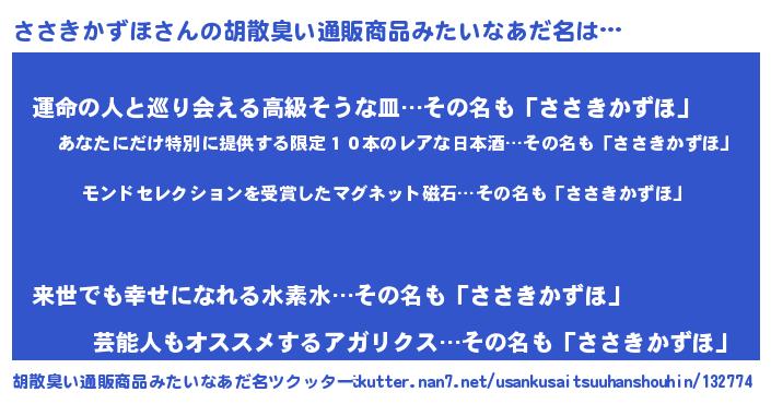 | 男性向けラノベタイトル風あだ名 | 『ささきかずほに滅ぼされるだけの簡単なお仕事です』 |