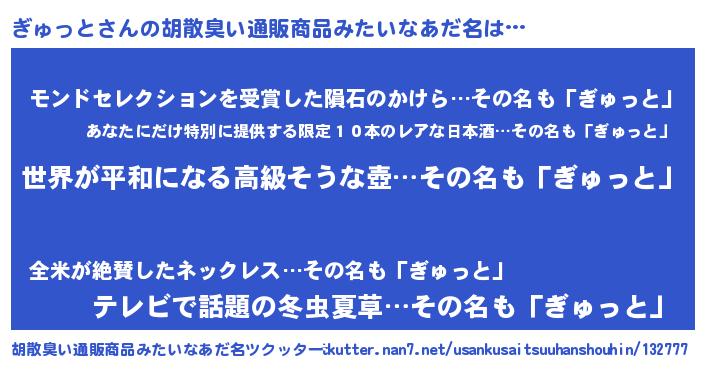 | ヘコむあだ名 | 『なまこ酢』『ぎゅお』『ぎゅにー』 |
