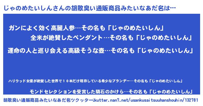 | 意味不明あだ名 | 『じゃのめたいしんフォーエバー』 |