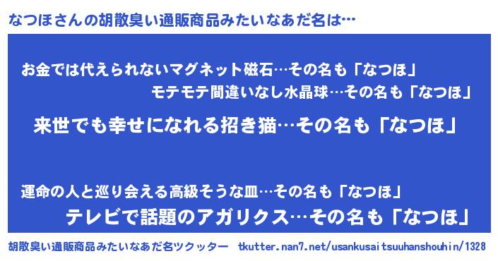 | ヘコむあだ名 | 『なつほ(小並感)』『なつふぇ~』 |